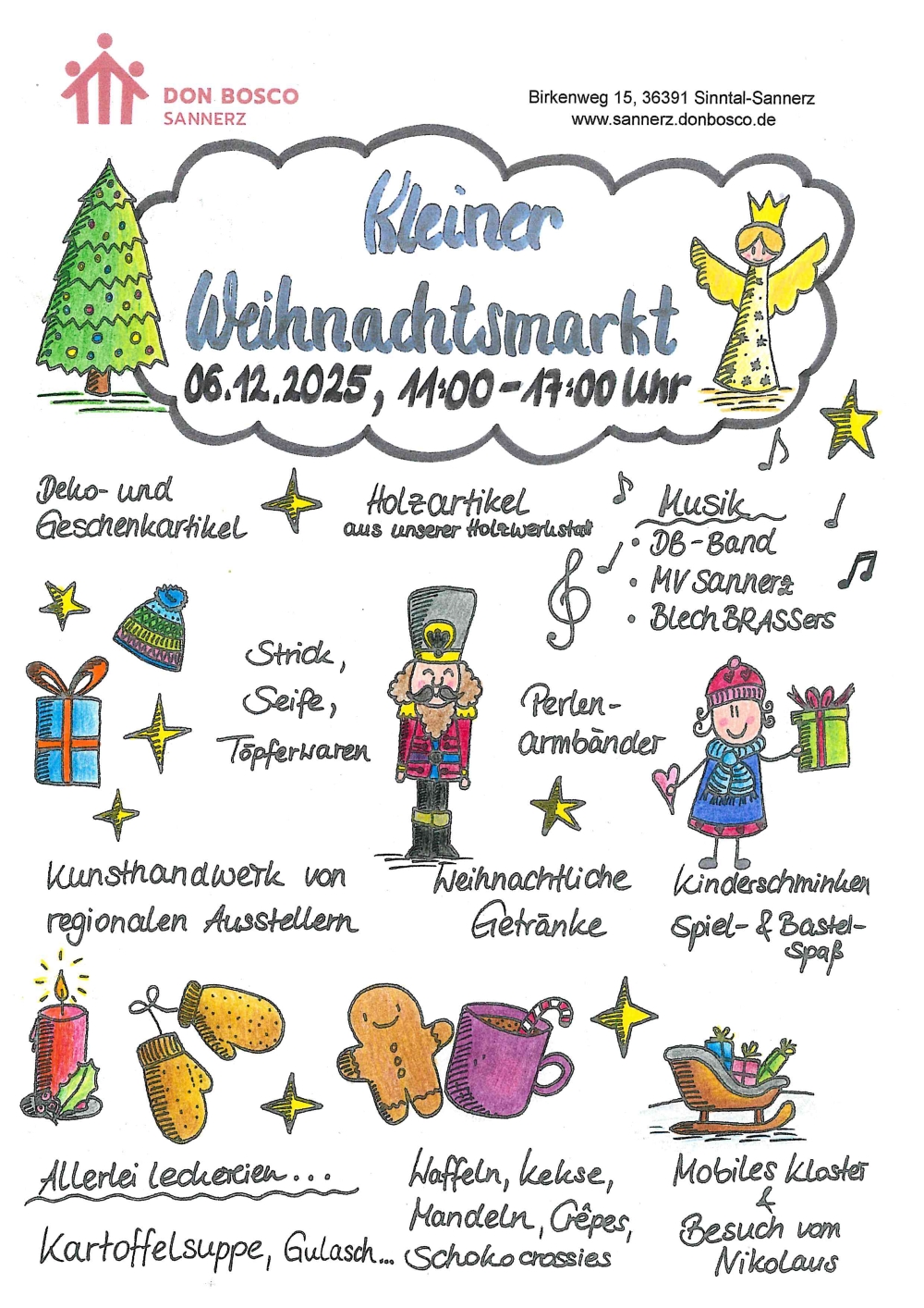 Das Jugendhilfezentrum Don Bosco Sannerz lädt am Samstag, 06.12.2025, von 11:00 bis 17:00 Uhr herzlich zu einem kleinen, liebevoll gestalteten Weihnachtsmarkt ein.